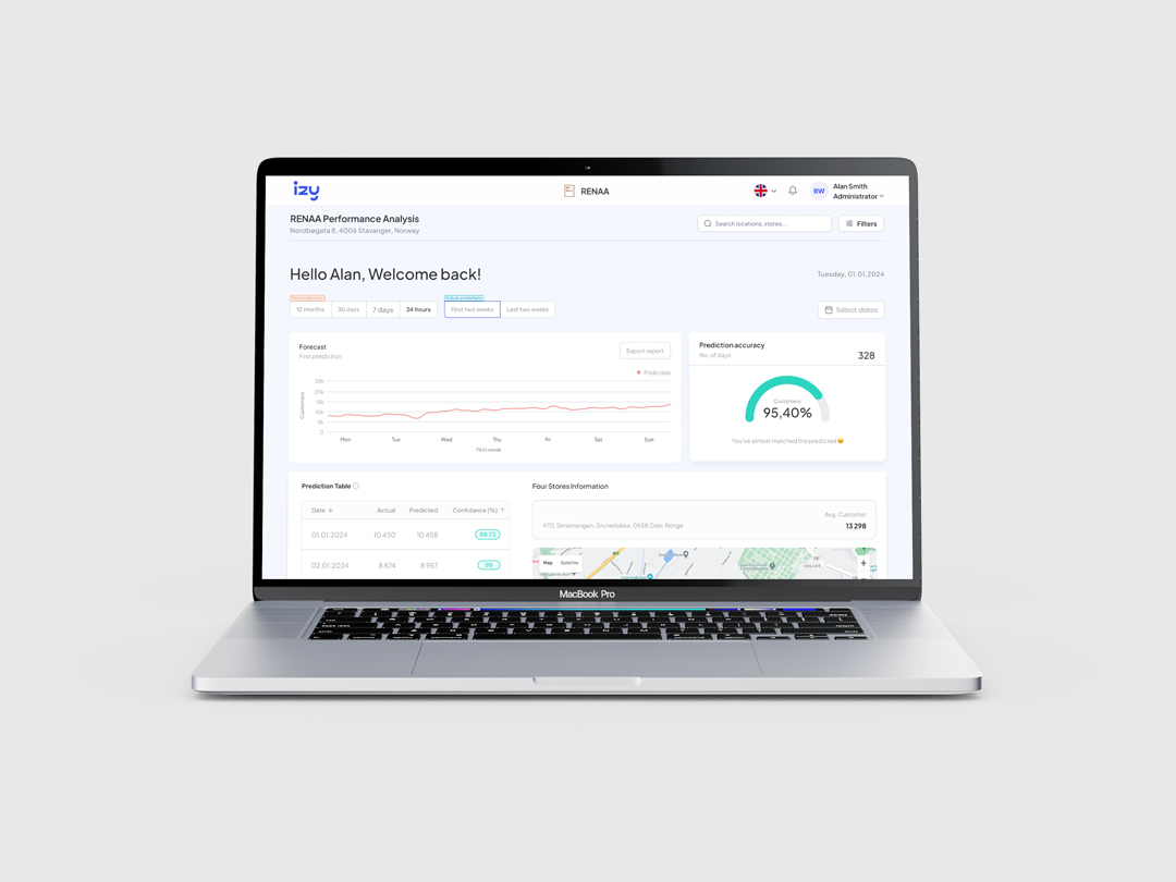 Create a comprehensive prediction dashboard allowing stores to forecast customer flow, compare predictions with actual data, and manage exceptions for effective restaurant and canteen operations.